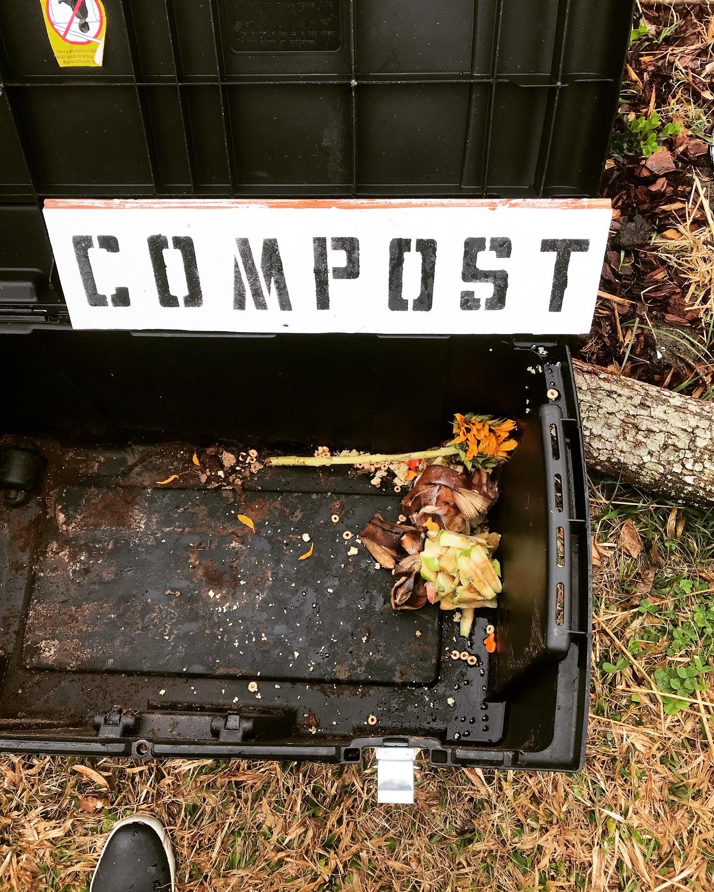 Perhaps the most meaningful part of the event was when I dropped in this, our first contribution from our handicapped neighbor who wanted to compost despite accessibility to his backyard and logistical challenges of turning a compost pile with physical limitations. He froze his scraps and we held on to them for us to drop off and turn into compost. We will continue to help facilitate his desire to compost by picking up his food waste weekly.