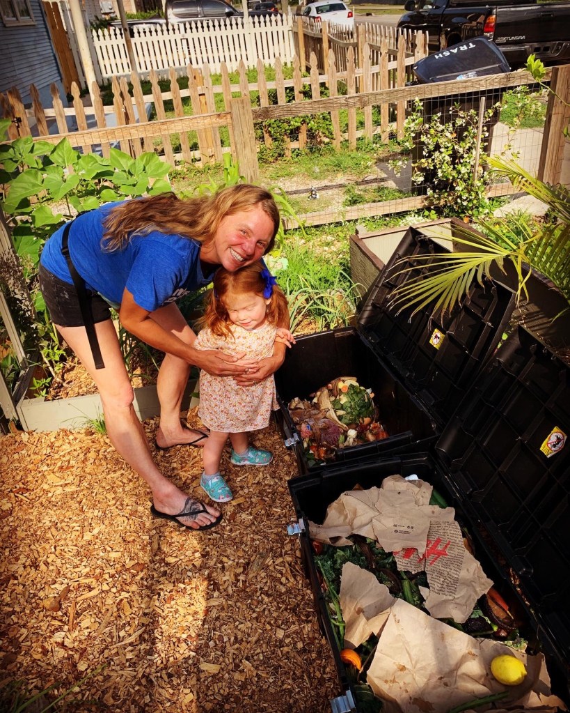 True to form, these are the only pictures we took of us today. I do find it fitting that it’s my darling daughter and I as I am collecting compost, and trying to keep her out of the bins…😂